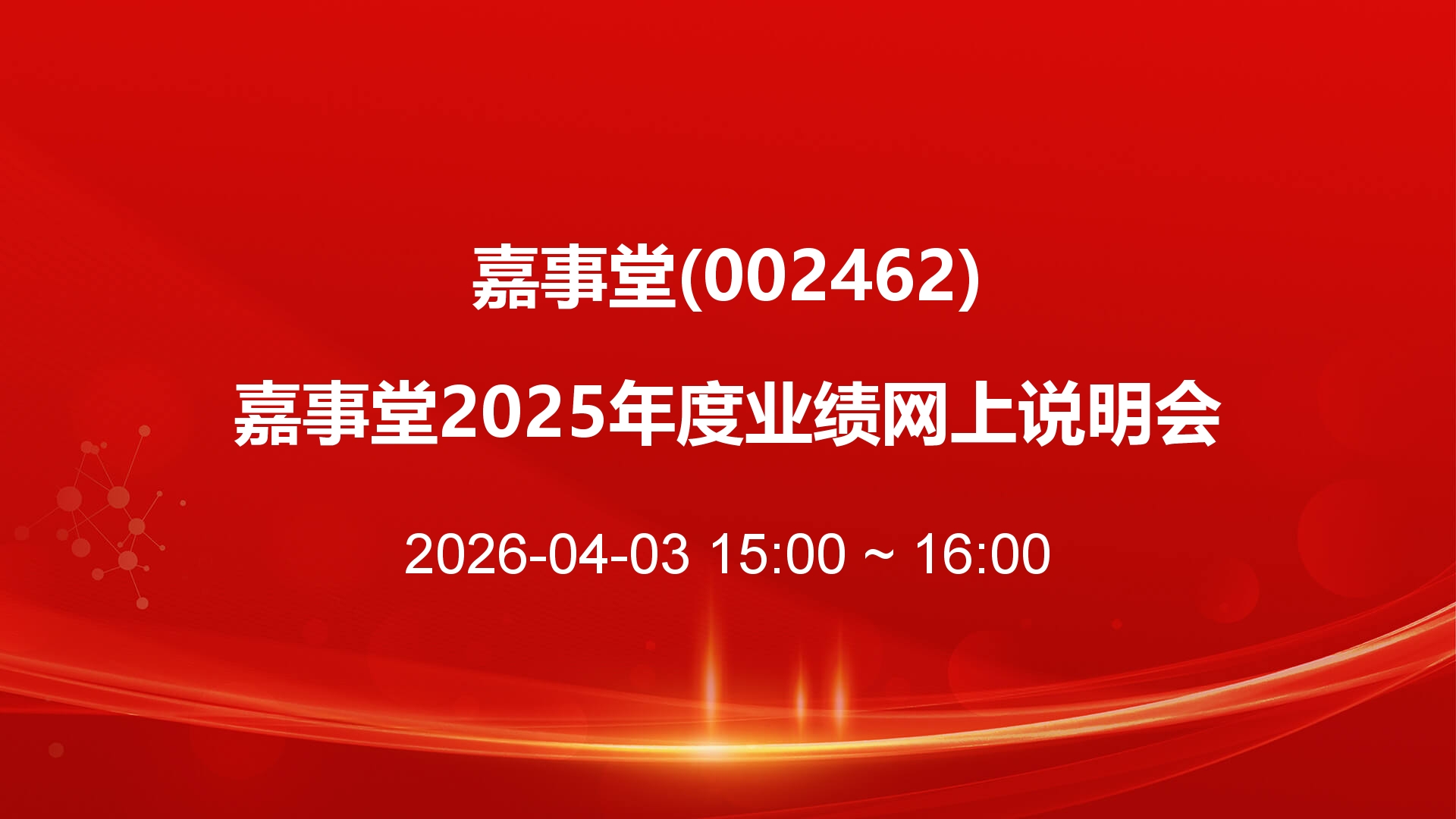 嘉事堂2025年度业绩网上说明会